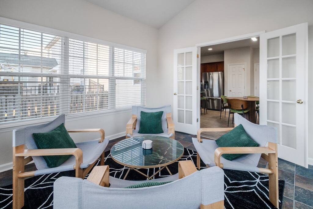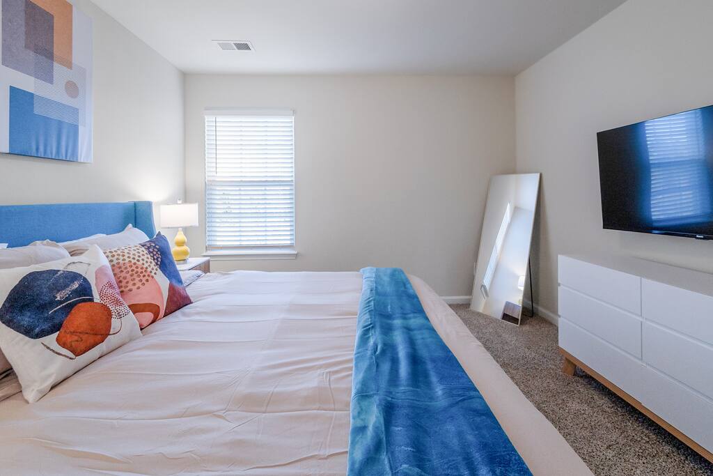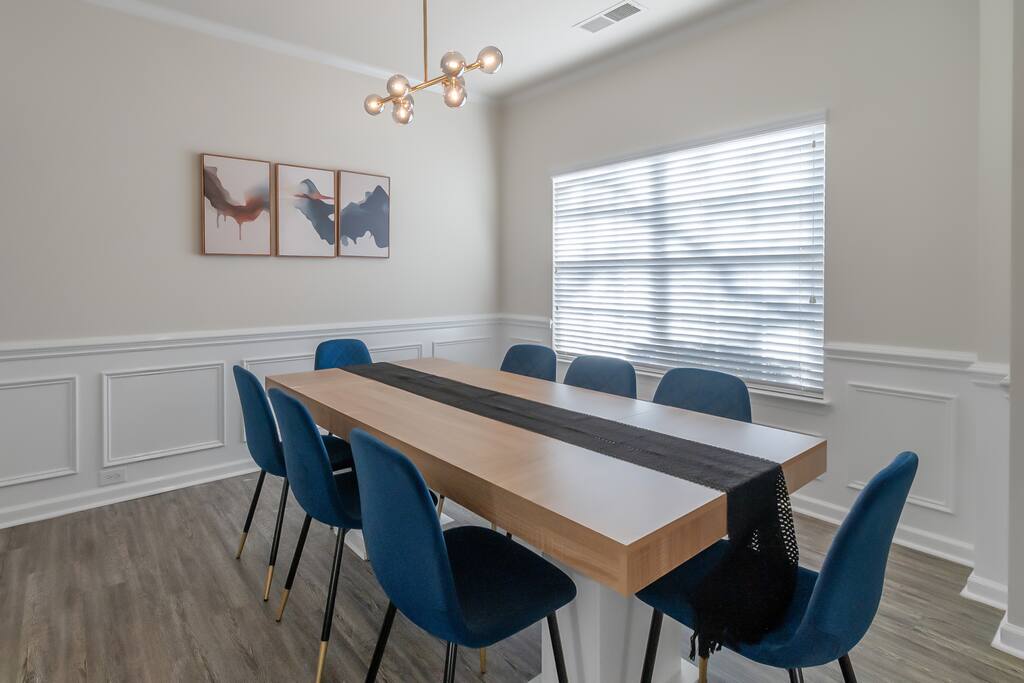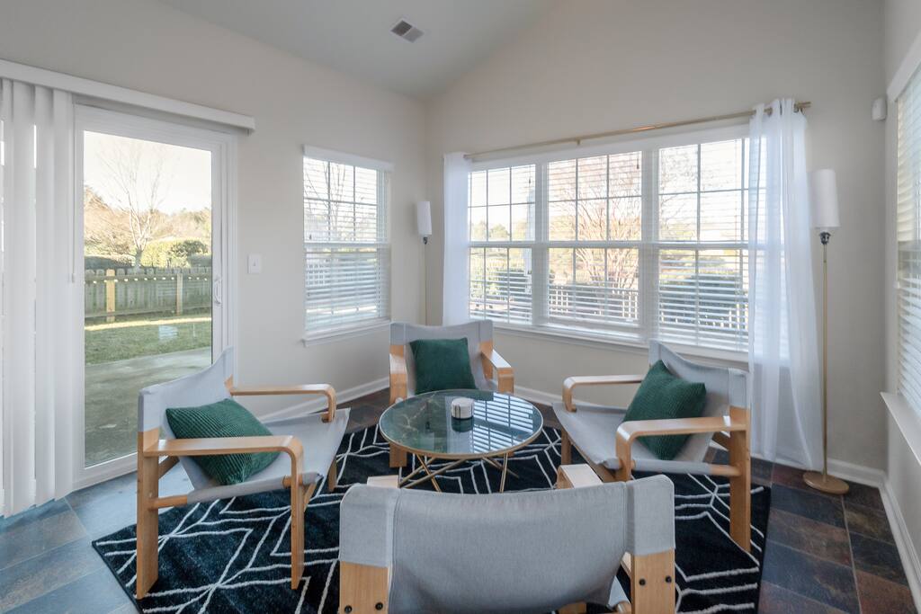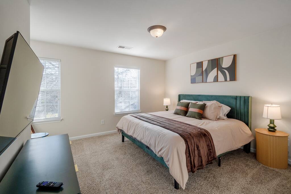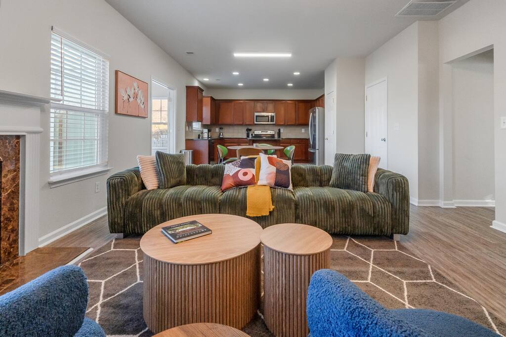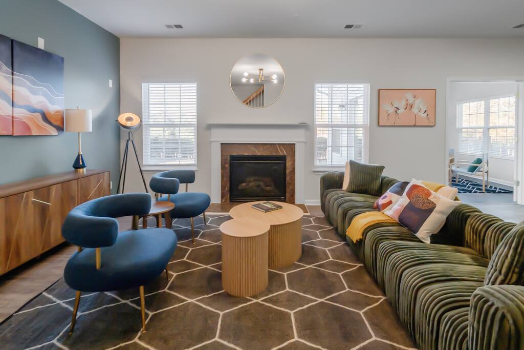 Settle into a spacious, modern-eclectic 5BR home designed for family trips, business travel, insurance stays, and relocations. Located near Premium Outlets and CLT Airport, this home sleeps 12–14 and offers multiple living areas, fast Wi-Fi, smart TVs in every bedroom, and a fenced backyard ideal for gatherings, coffee in the sunroom, or unwinding after a day exploring Charlotte. Whether you’re here for work or a getaway, there’s plenty of room to cook, stream, work, relax, and explore.