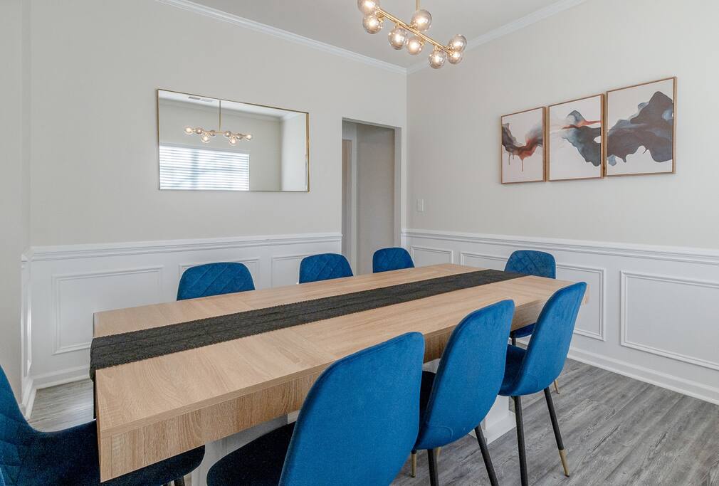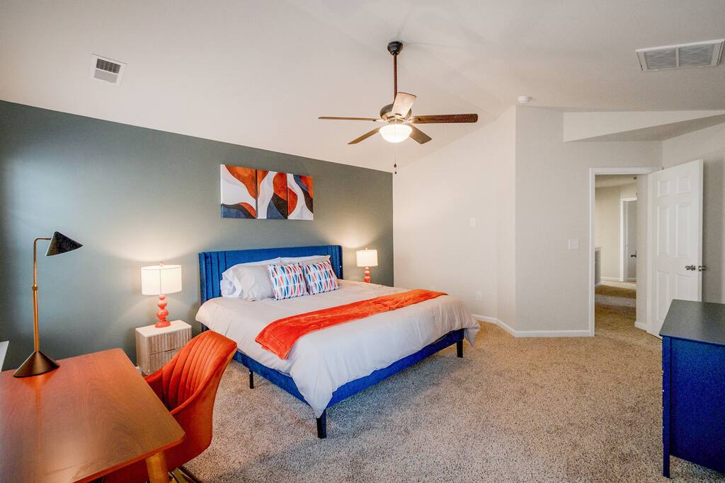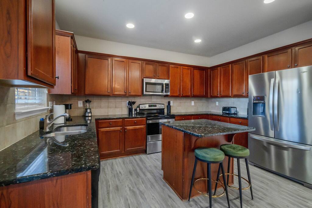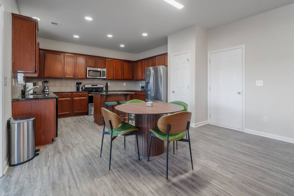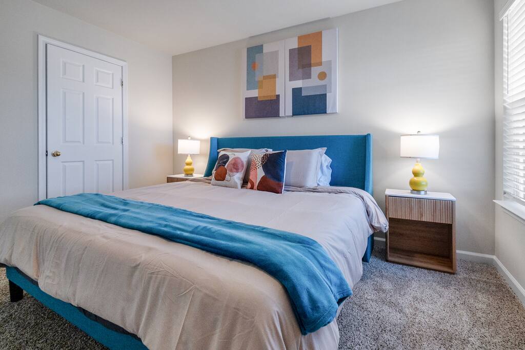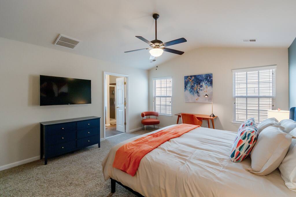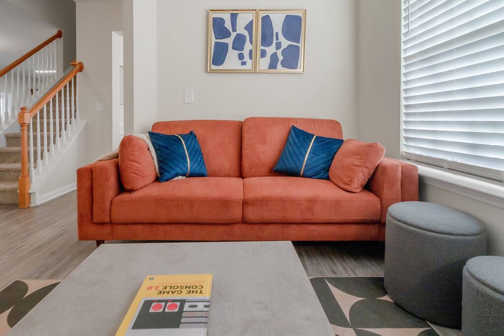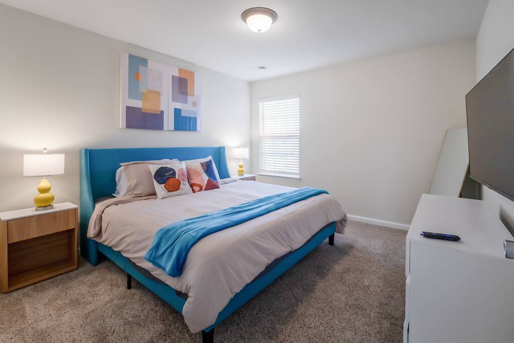 Settle into a spacious, modern-eclectic 5BR home designed for family trips, business travel, insurance stays, and relocations. Located near Premium Outlets and CLT Airport, this home sleeps 12–14 and offers multiple living areas, fast Wi-Fi, smart TVs in every bedroom, and a fenced backyard ideal for gatherings, coffee in the sunroom, or unwinding after a day exploring Charlotte. Whether you’re here for work or a getaway, there’s plenty of room to cook, stream, work, relax, and explore.