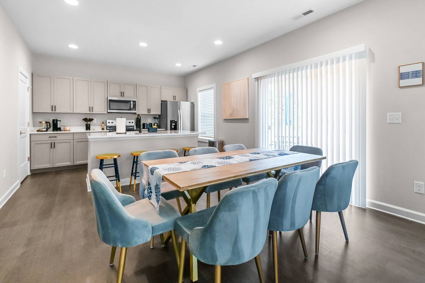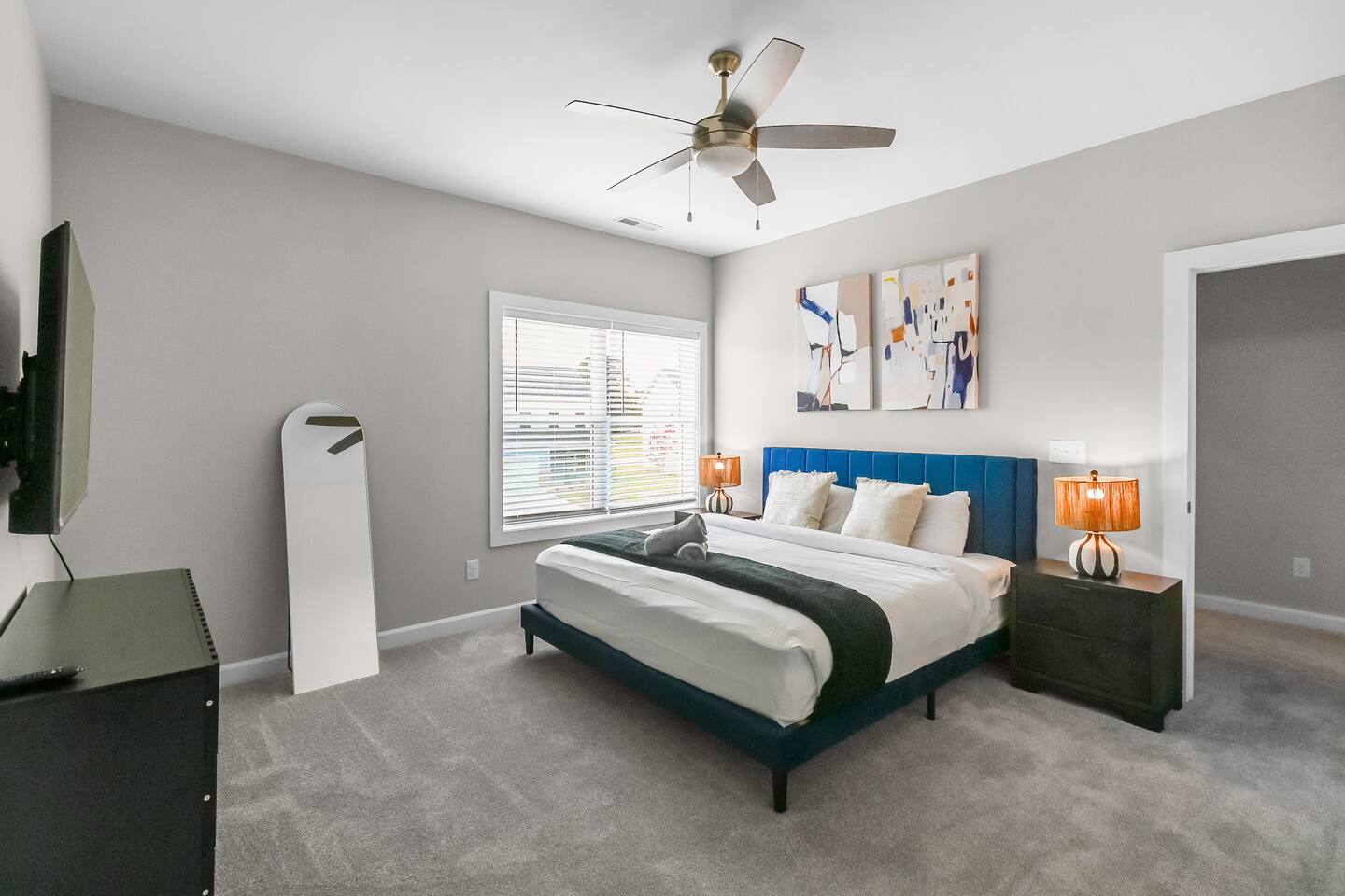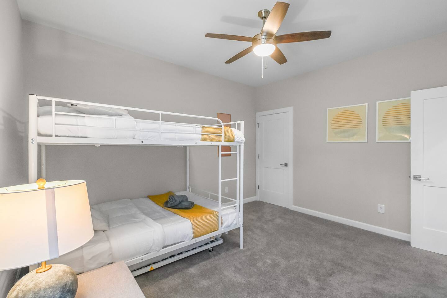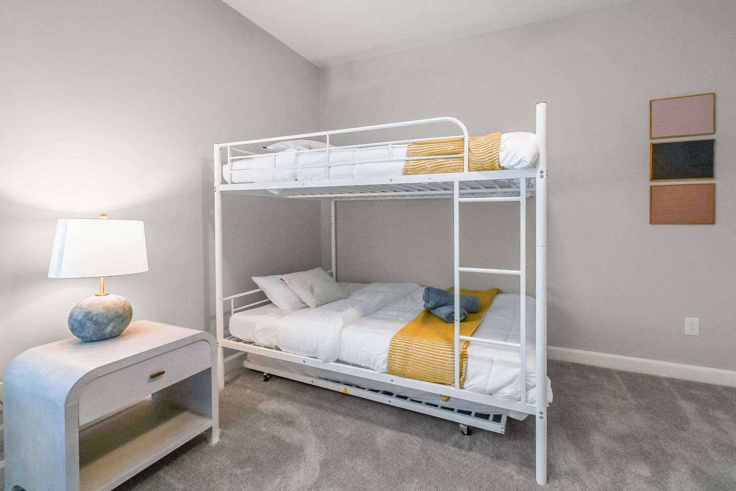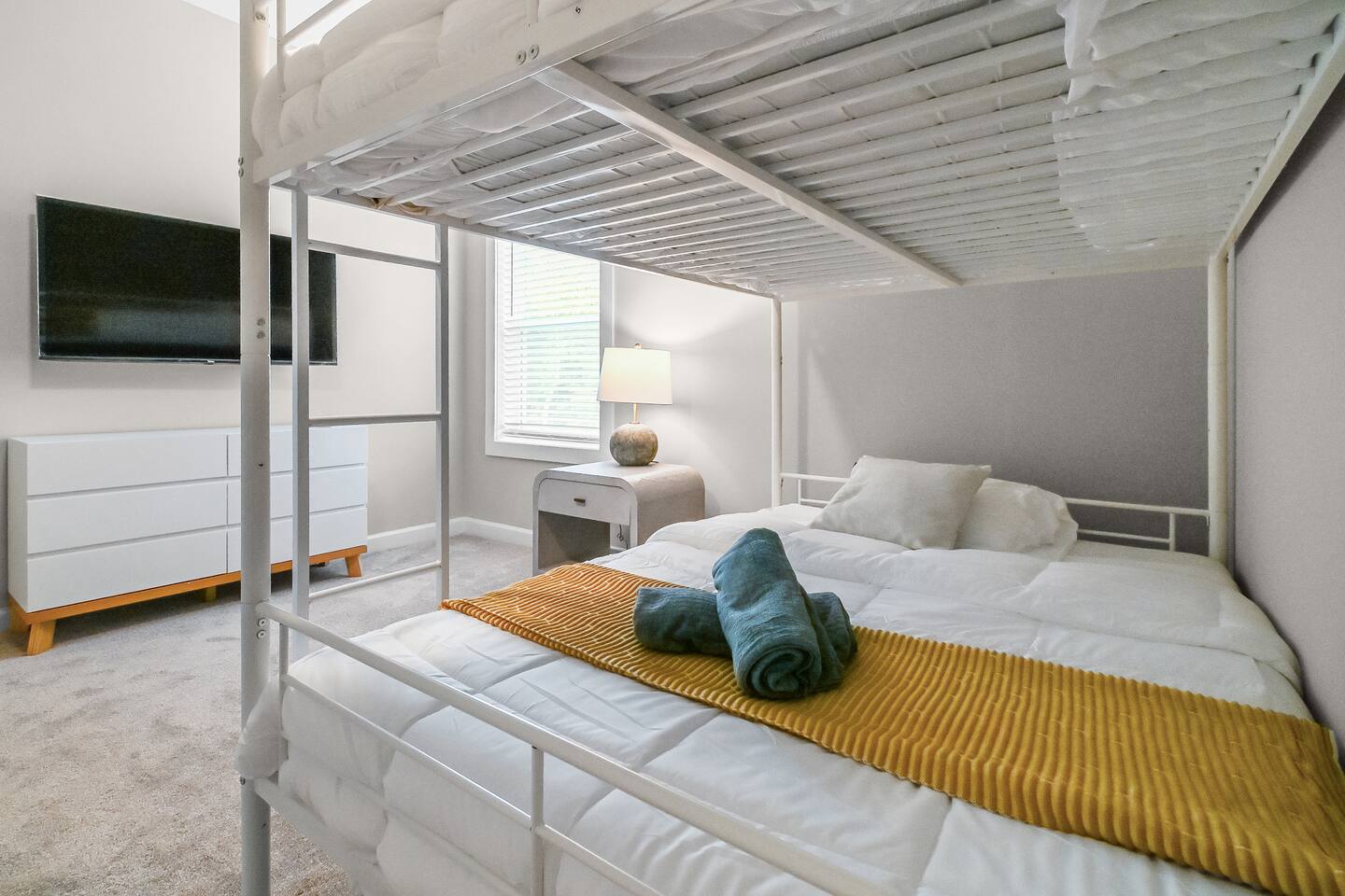 ◆ MASTER BEDROOM ◆ ✔ Unwind in a luxurious king bed with soft linens and a private en-suite bathroom ✔ Features a smart TV for your favorite streaming apps, walk-in closet, dresser, and blackout curtains for restful nights ◆ SECOND BEDROOM ◆ ✔ Outfitted with a second plush king bed - ideal for couples or business travelers ✔ Includes a smart TV, dresser, and generous closet space for longer stays ◆THIRD BEDROOM ◆ ✔ Perfect for families or groups, this room features a full-over-full bunk bed with a twin trundle ✔ Comes with a smart TV, dresser, and closet for extra storage ◆ LIVING ROOM ◆ ✔ A bright, open-concept space for lounging or getting work done ✔ Features an L-shaped sofa, Roku-enabled smart TV, accent chairs, and a coffee table ✔ Sliding doors lead to a peaceful backyard deck ◆ KITCHEN AND DINING AREA ◆ ✔ Fully equipped with stainless steel appliances, cooking basics, and tools for any meal ✔ Keurig with coffee pods, air fryer, blender, toaster, and a large island with seating for 4 ✔ The adjacent dining table seats up to 8 - great for family dinners or team meetings up to 12 ◆ BATHROOMS ◆ ✔ 2.5 bathrooms, including a private master en-suite ✔ Stocked with shampoo, conditioner, body wash, plush towels, and a hair dryer ◆ OUTDOOR SPACE ◆ ✔ Relax or dine on the patio with seating for 8 ✔ Located in a quiet cul de sac—perfect for unwinding between meetings or after a day exploring Charlotte ◆ ADDITIONAL AMENITIES ◆ ✔ Washer and dryer in unit (detergent and dryer sheets provided) ✔ Foldable high chair with padding, straps, and tray ✔ Extra linens, pillows, iron, and drying rack ◆ SAFETY AND SECURITY ◆ ✔ Smoke and carbon monoxide detectors, fire extinguisher, and first aid kit ✔ Ring doorbell camera, exterior security cameras, and noise decibel monitors ◆ ENTERTAINMENT & CONNECTIVITY ◆ ✔ 5 smart TVs located throughout the home ✔ Gig-speed fiber WiFi (559 Mbps) verified - ideal for video calls, streaming, or team work ✔ Game room lounge with board games and smart TV ◆ HEATING AND COOLING ◆ ✔ Central heating and cooling for year-round comfort ✔ Ceiling fans in select rooms ◆ PARKING AND FACILITIES ◆ ✔ Free parking in 2-car garage and private driveway (up to four cars total) ✔ Private entrance and self check-in via smart lock ◆ SERVICES ◆ ✔ Self check-in with smart lock ✔ Long-term stays allowed (28+ days) ✔ Housekeeping available upon request (additional fee) ✔ Pet-friendly with rules and $100 per pet fee ✔ Up to 2 house-trained dogs ✔ Must be crated if left alone and leashed outdoors ✔ Guests are responsible for cleanup; damage or excess cleaning may incur charges ◆ LOCATION PERKS, MINUTES TO EVERYTHING ◆ ✔ 20 minutes to Uptown Charlotte ✔ 13 minutes to Charlotte Douglas International Airport (CLT) ✔ 8 minutes to the U.S. National Whitewater Center ✔ 20 minutes to the NASCAR Hall of Fame ✔ 16 minutes to Bank of America Stadium ✔ 28 minutes to SouthPark Mall ✔ 17 minutes to Truist Field ✔ Peaceful setting in a quiet, newly built cul de sac neighborhood ◆ WHAT MAKES THIS HOME SPECIAL ◆ ✔ Three private bedrooms, two with king beds ✔ Separate lounge with workspace ✔ Game room with board games ✔ Open concept living and dining ✔ Fully equipped kitchen ✔ Backyard dining area ✔ Five smart TVs ✔ High speed WiFi ✔ Free parking with garage and driveway ◆ QUICK ANSWERS ◆ ✔ Pets: Yes, year-round ✔ Parking: Free + on-premises ✔ WiFi speed: Gigabit ✔ Self check-in: Yes, smart lock ✔ Laundry: In-unit ✔ Workspace: Dedicated office + fast WiFi ✔ Bed types: 2 king beds + bunk room ✔ Proximity: 20 min to Uptown, 13 min to CLT Airport Whether you’re in town for work, a family relocation, or a weekend escape, this home offers everything you need, from ultra-fast WiFi and workspaces to cozy bedrooms and a peaceful backyard. Minutes from Uptown Charlotte, the airport, and major attractions - book your stay today and enjoy a space that works as hard as you do.